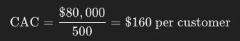 During this quarter, the company acquires 500 new customers. Thus, the CAC is calculated as: